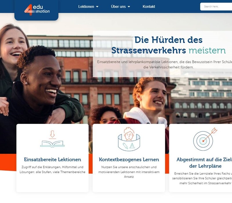 Edu4motion ist ein Portal mit aufbereiteten Lektionen für Lehrpersonen der Sekundarstufe I und II. Die Lektionen decken Lernziele der Lehrpläne ab, insbesondere bezüglich Mobilität, und sensibilisieren für Themen der Verkehrssicherheit. Mithilfe von Unterrichtslektionen für verschiedene Fächer können Jugendliche zwischen 12 und 18 Jahren ihr eigenes Mobilitätsverhaltens reflektieren, Gefahren einschätzen und sich die Folgen von Unfällen vergegenwärtigen. Das Projekt dient der Verkehrssicherheit und beinhaltet mehrere Lektionen in verschiedenen Fächern.