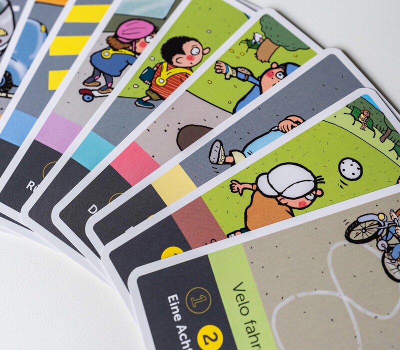 Bei diesem Spiel müssen Familien von drei Karten zusammengesetzt werden. Jede Kartenfamilie stellt eine Verkehrssituation dar und jede Karte stellt die richtige Handlungsweise in einem bestimmten Strassenumfeld dar. Dieses Spiel ist für 5- bis 9-jährige Kinder bestimmt und kann mit einem oder mehreren Partnern gespielt werden. Der Gewinner hat die meisten Familien zusammengesetzt.