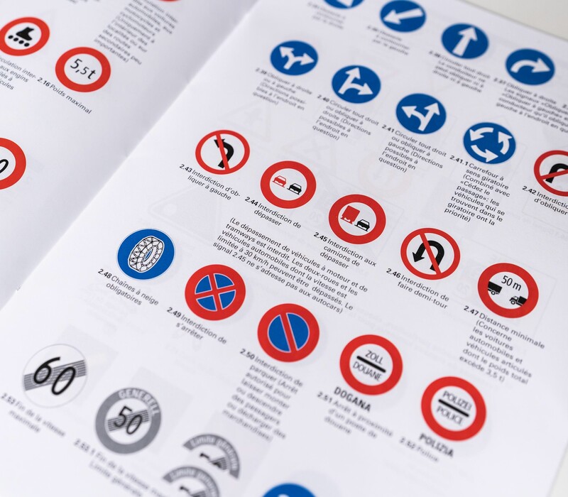 Il s'agit d'une brochure qui réunit tous les signaux routiers suisses, des panneaux de signalisation aux marquages sur le sol. La brochure est accompagnée d'un grand poster avec la représentation de tous ces signaux. Ces supports permettront aux 12-15 ans de se familiariser avec les diverses significations des panneaux qu’ils rencontreront sur la route.
