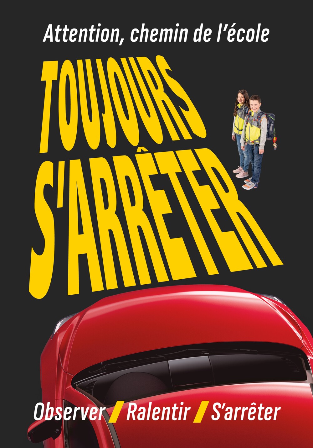 Pour tous les enfants, la règle est la même lorsqu’ils traversent la rue : écouter, s'arrêter, traverser, regarder. Mais qu’en est-il pour les adultes au volant ou au guidon ? Avec la devise « Observer | Ralentir | S’arrêter », la campagne nationale sur le chemin de l’école résume de manière concise les principaux comportements à adopter sur la route et contribue à la prévention des accidents impliquant des enfants. L’objectif de la campagne est non seulement de sensibiliser aux dangers de la route, mais également de modifier le comportement de tous les usagers de la route, en particulier parmi les automobilistes.