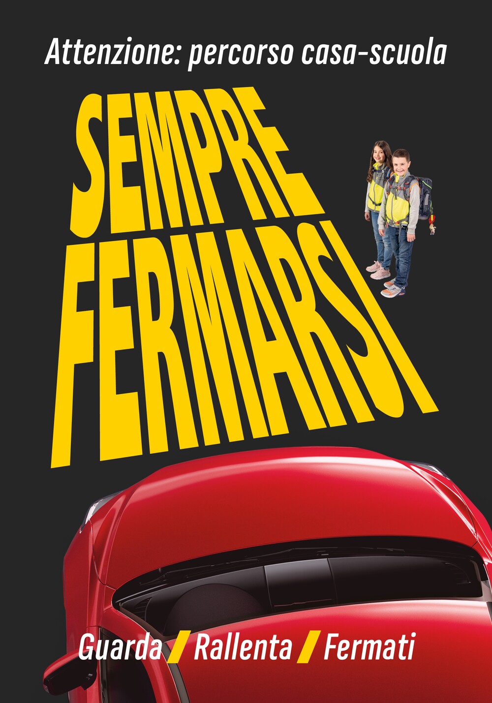 Quando i bambini attraversano la strada devono ricordarsi di: ascoltare, fermarsi, attraversare, guardare. Ma cosa sono tenuti realmente a fare gli adulti al volante o in sella? La campagna nazionale per un percorso casa-scuola sicuro con lo slogan «Guarda | Rallenta | Fermati» riassume in modo conciso i principali consigli di comportamento nel traffico stradale e aiuta a prevenire incidenti che coinvolgano i bambini. L’obiettivo della campagna non è solo accrescere la consapevolezza dei pericoli nel traffico stradale, ma anche modificare il comportamento di tutti gli utenti della strada, in particolare degli automobilisti.